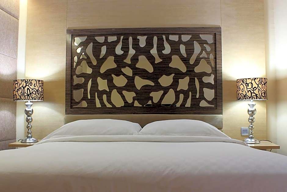 The suite offers air conditioning, a mini-bar, a tea and coffee maker, executive lounge access and a flat-screen TV with cable channels. The unit offers 1 bed.